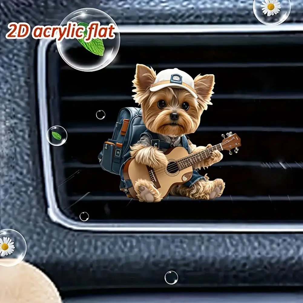 Yorkie Car Vent Clip Cute Dog Air Freshener Automobile Pendant With Fragrance Pad Gift For Dog Lovers Guitar Enthusiasts