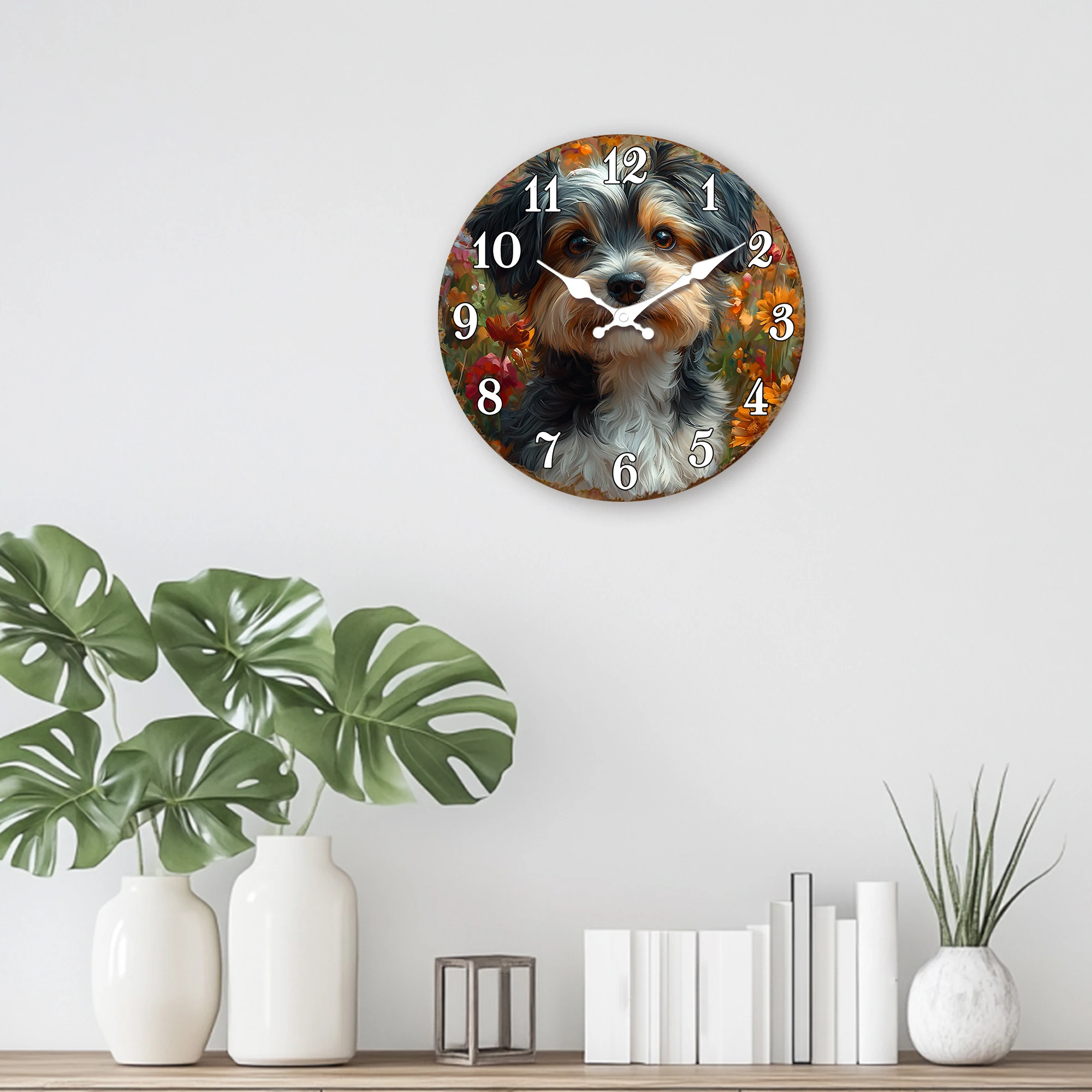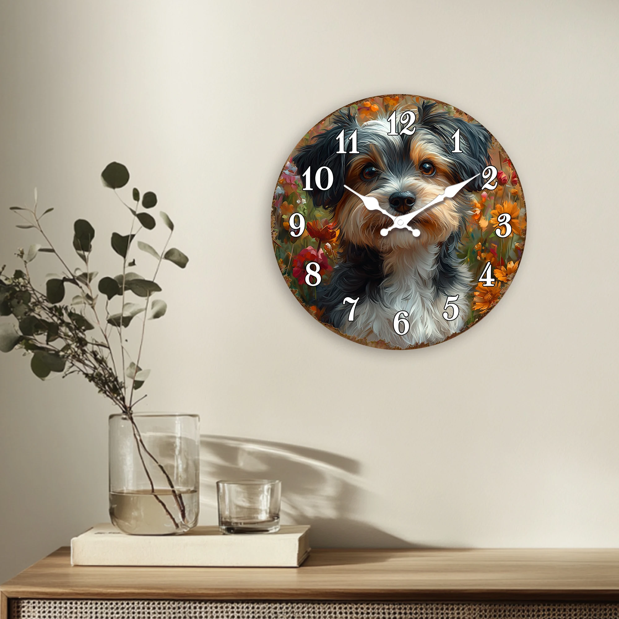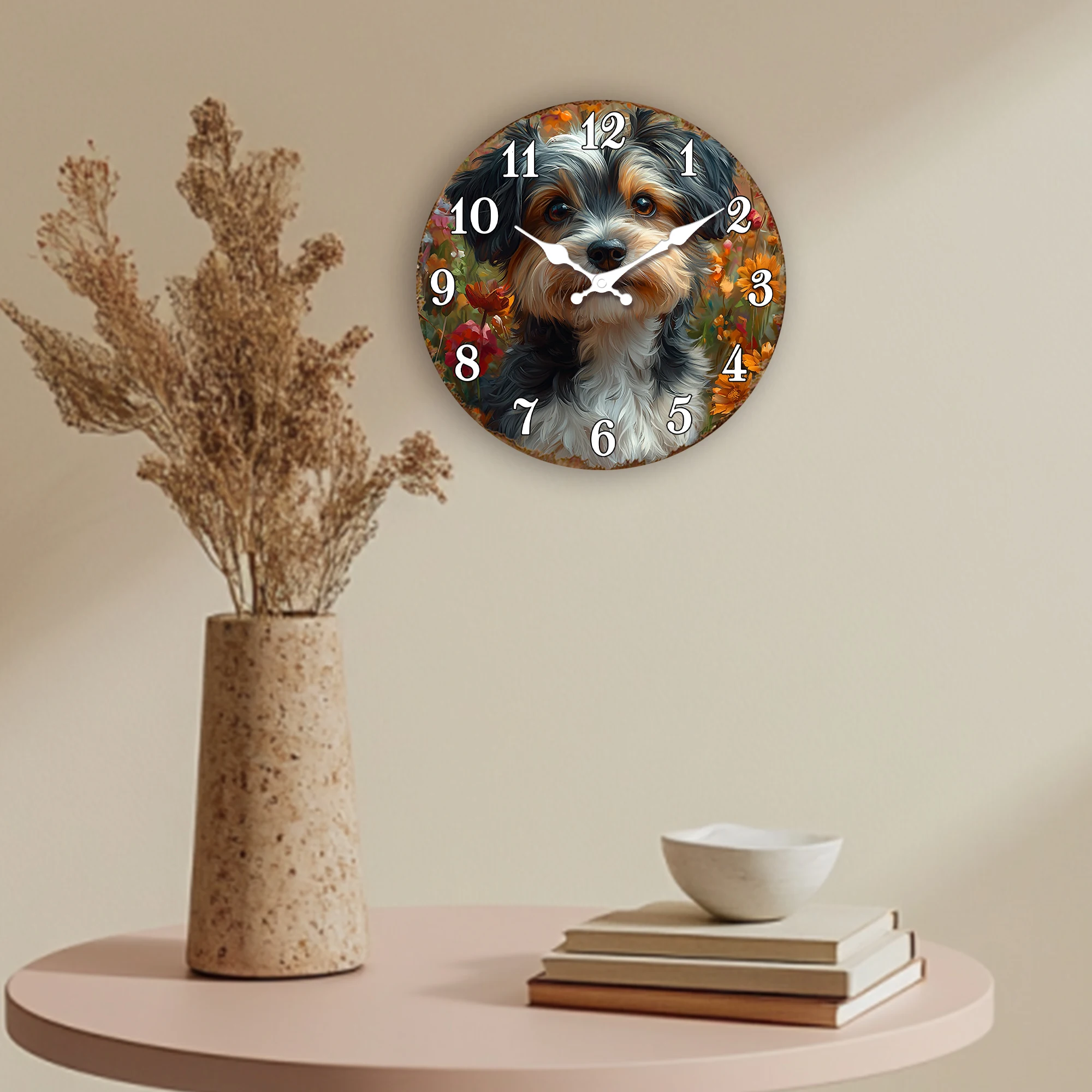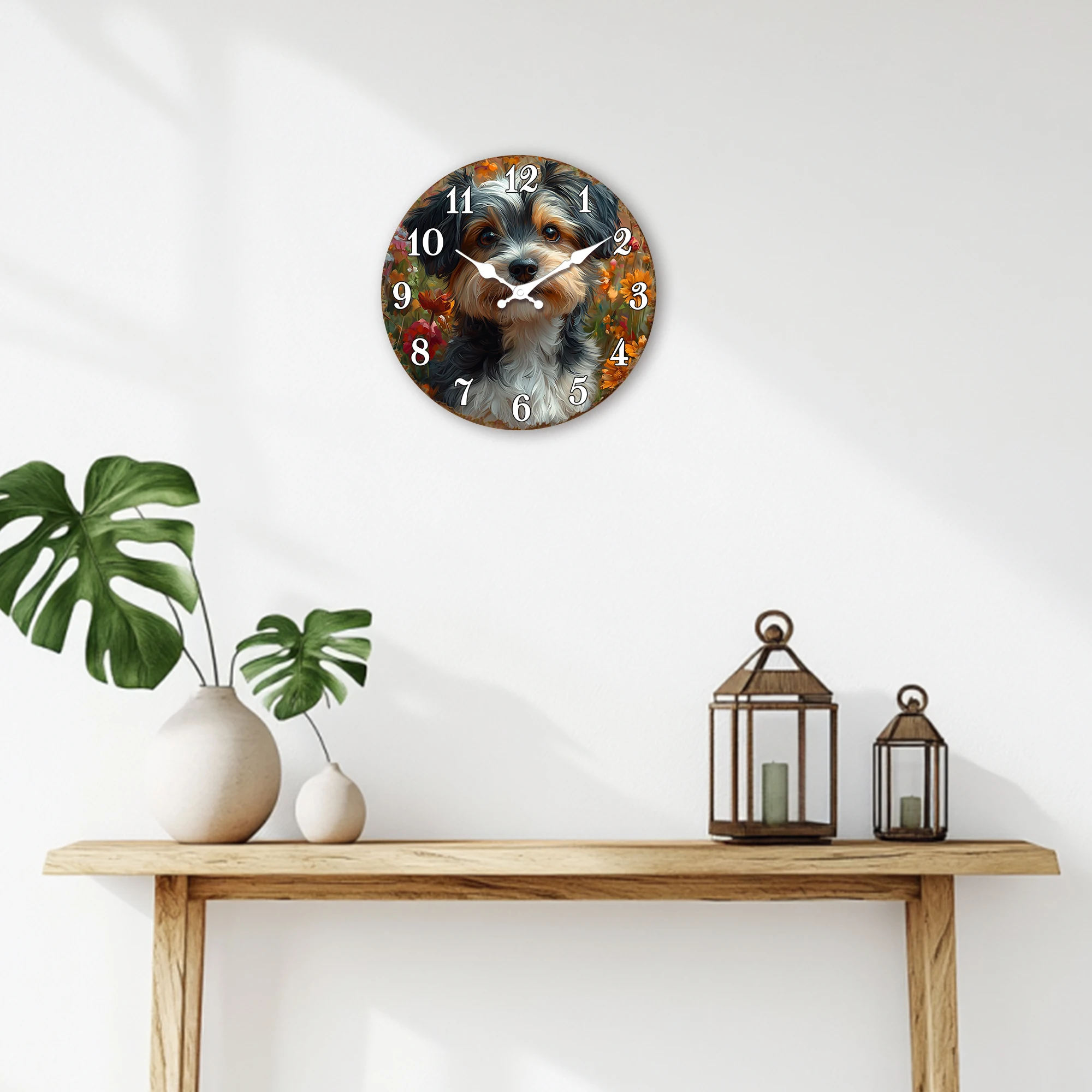 Yorkie Dog Wooden Round Silent Hanging Wall Clock